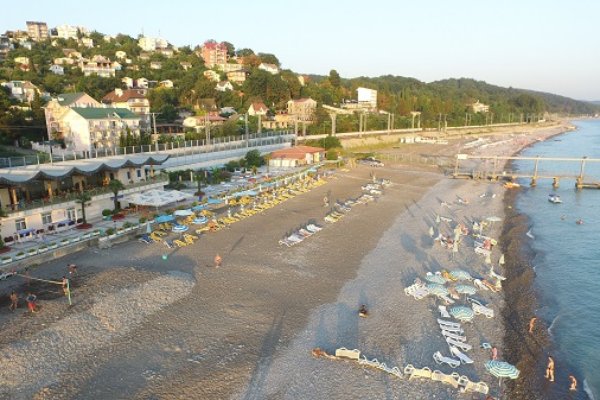 Санаторий «Одиссея» на первой береговой линии у моря располагает одним из лучших пляжей в районе. Пляжная территория здесь достаточно протяженная с мелкой галькой и широкой полосой чистого песка. Собственный пляж начинается всего в 300 метрах от корпуса. Можно дойти пешком через подземный переход под автодорогой или доехать на бесплатном шатле (минивэне), который регулярно курсирует туда-обратно по расписанию.